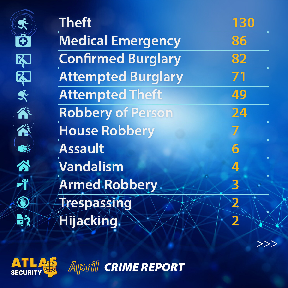 - 31 arrests were made by Atlas Security’s Armed Response Officers — a direct result of prompt action on the ground.