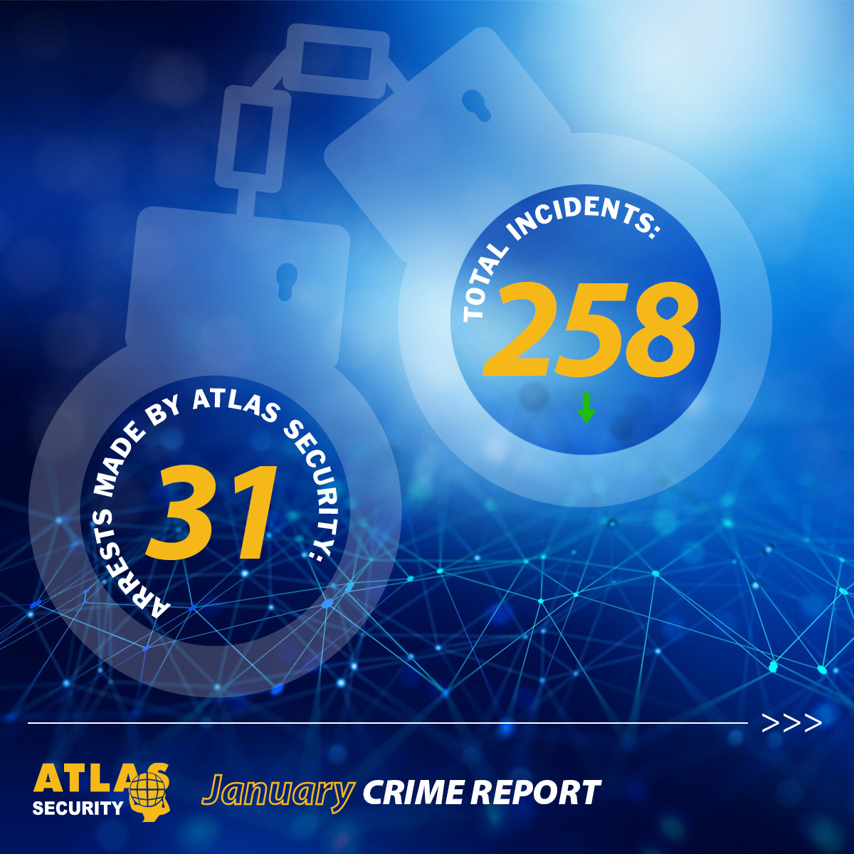 Atlas Security teams effected 31 arrests during January. These arrests were primarily linked to theft, robbery, and attempted burglary incidents, often following rapid response or proactive patrol intervention.