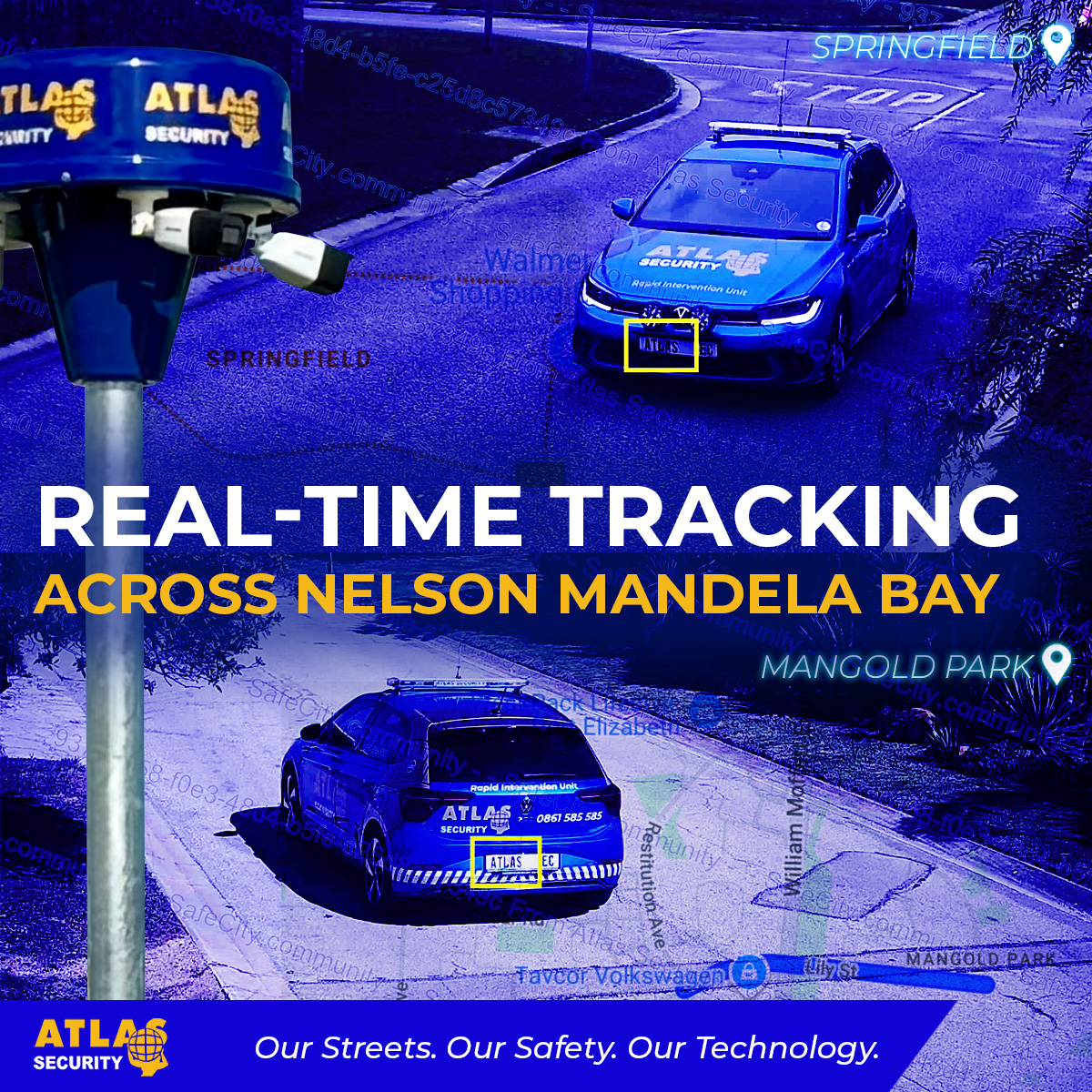 Our Rapid Intervention Units are actively patrolling the streets of Nelson Mandela Bay around the clock and Atlas Security's robust CCTV network is watching every move. These images were captured across multiple locations throughout the metro, from Springfield to Walmer, from Lily Street to Berea Road. A simple search for "ATLAS" in the system returned multiple hits, our own vehicles, tracked and identified within seconds across the city.